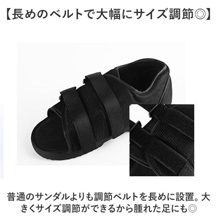・普通のサンダルよりも調節ベルトを長めに設置。大きくサイズ調節ができるから腫れた足にも◎