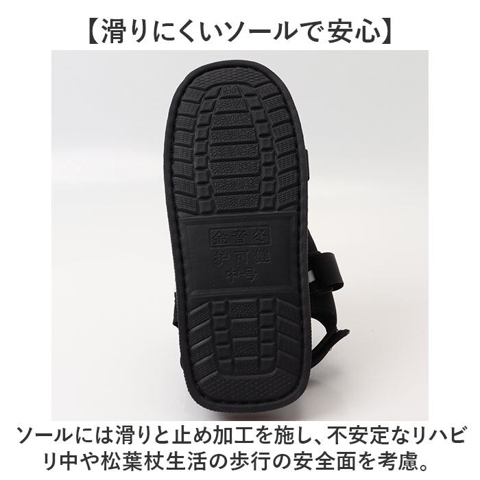 ・ソールには滑りと止め加工を施し、不安定なリハビリ中や松葉杖生活の歩行の安全面を考慮。