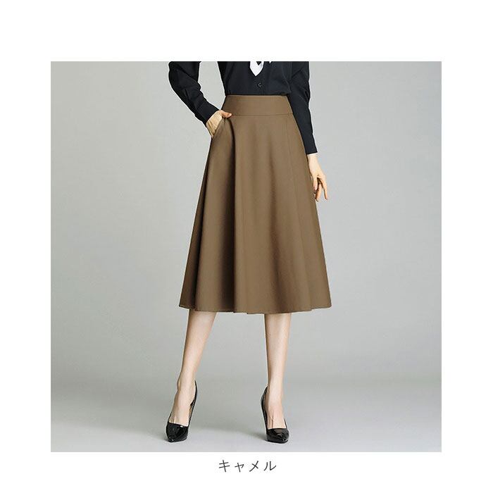 フレアスカート ミモレ丈 春秋冬 kskirt003