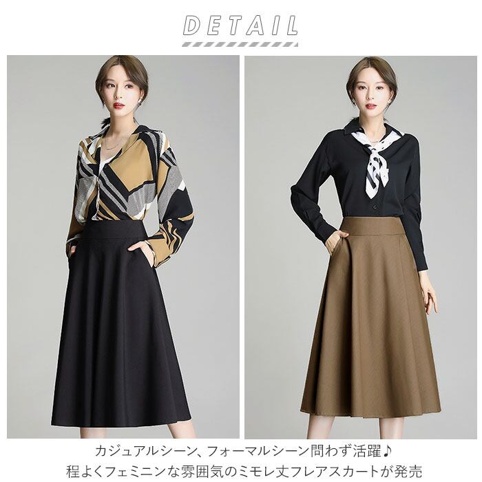 ・カジュアルシーン、フォーマルシーン問わず活躍♪程よくフェミニンな雰囲気のミモレ丈フレアスカートが発売。