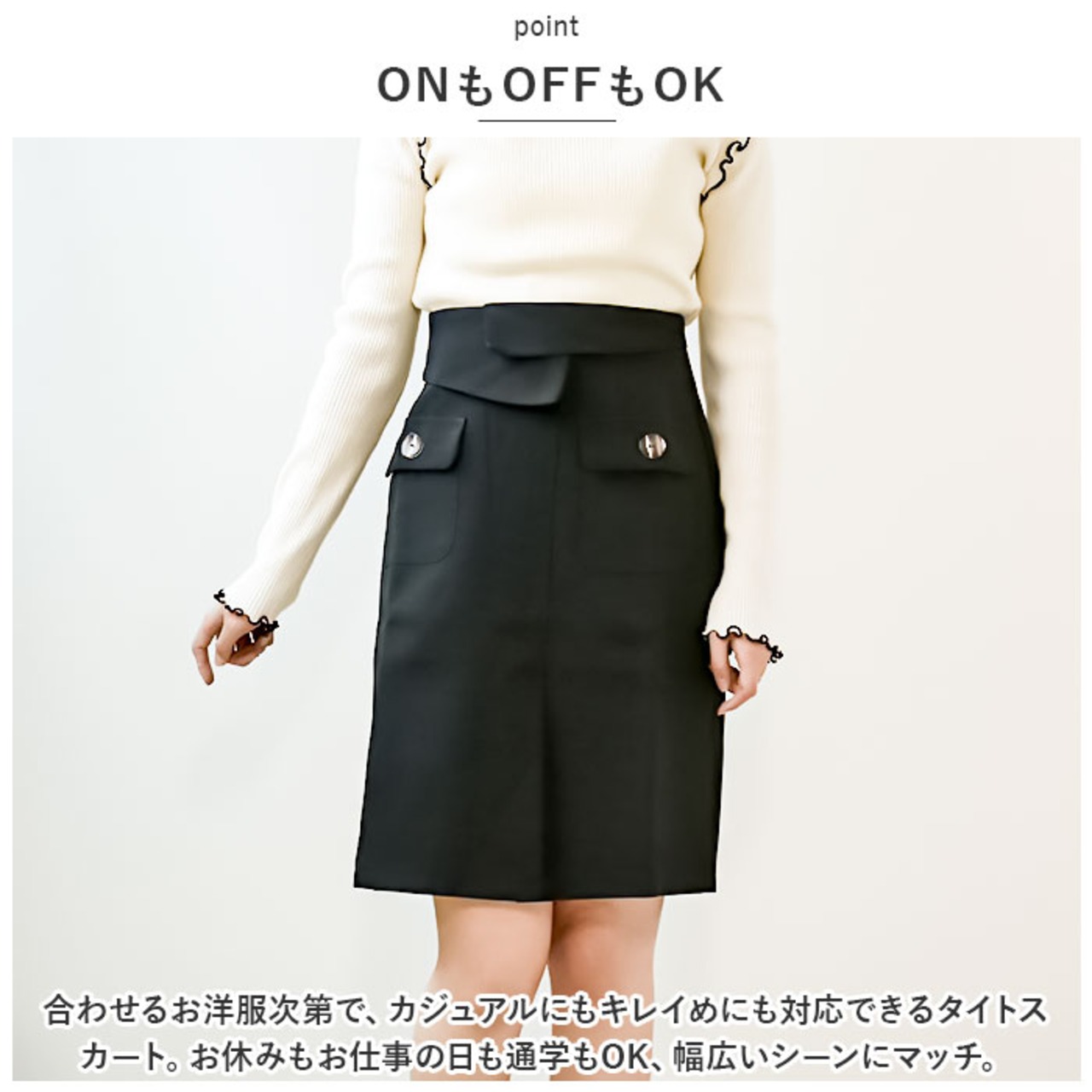 ・合わせるお洋服次第で、カジュアルにもキレイめにも対応できるタイトスカート。お休みもお仕事の日も通学もOK、幅広いシーンにマッチ。