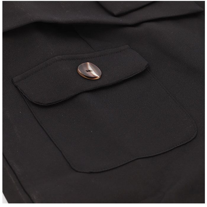 ・フロント部分には深めのスリットを配置。抜け感が出て重い印象にならない。動きやすさも◎