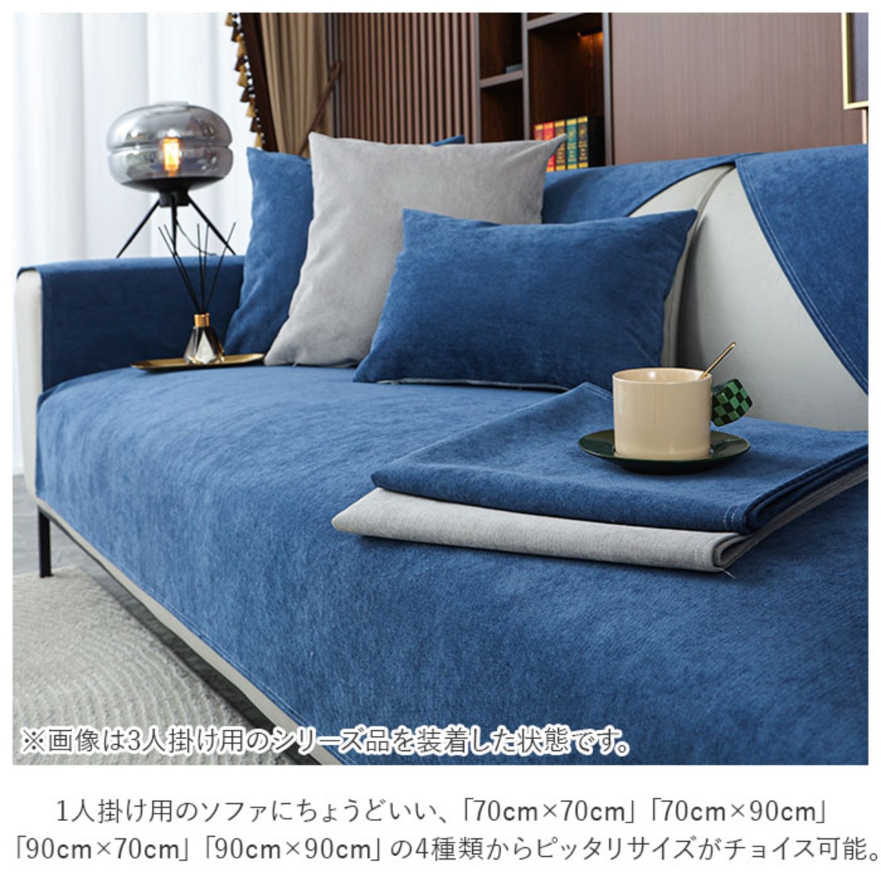 1人掛け用のソファにちょうどいい、「70cm×70cm」「70cm×90cm」「90cm×70cm」「90cm×90cm」の4種類からピッタリサイズがチョイス可能。