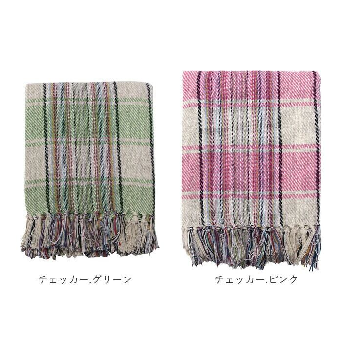 ・コットンを100%使用したインド製のマルチカバー。天然素材が魅せるナチュラルな風合いとサラっと柔らかい手触りが魅力。