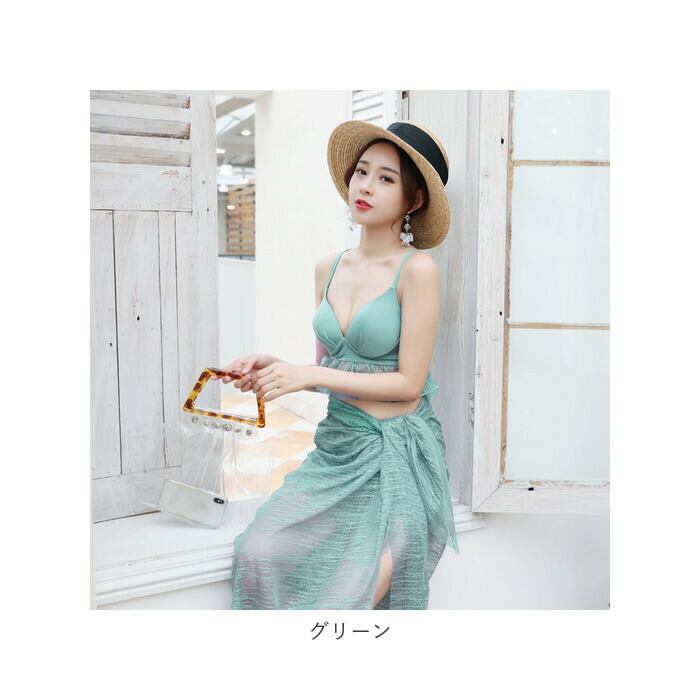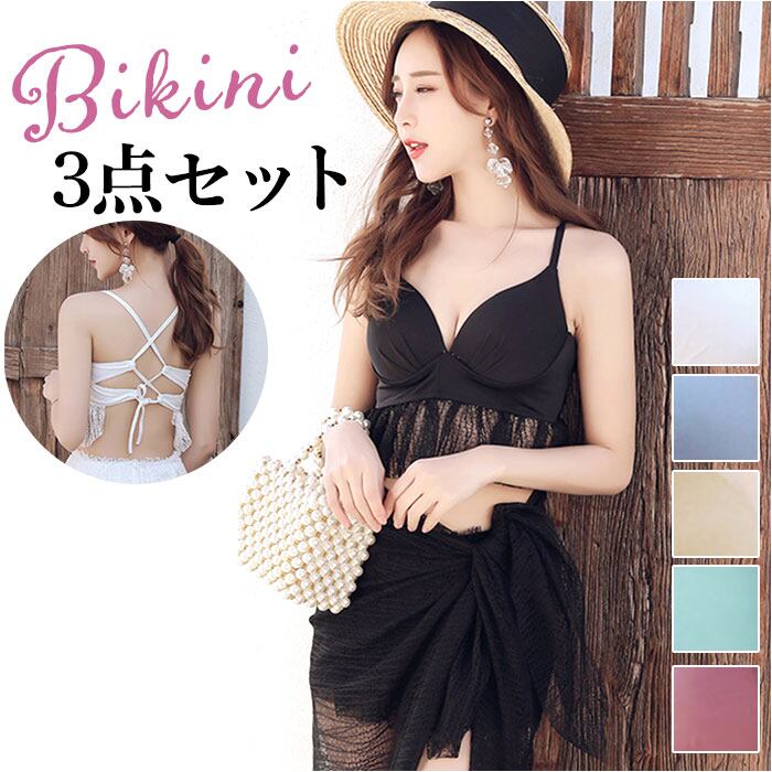・レースの透けてるデザインが大人可愛い水着3点セットが発売♪