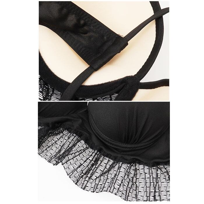 ・ブラとパンツはシンプルなビキニスタイル。レースのフリル使いで肌の露出を抑えてくれるのも嬉しいポイント。