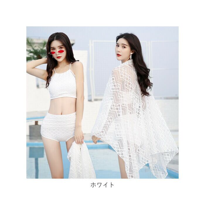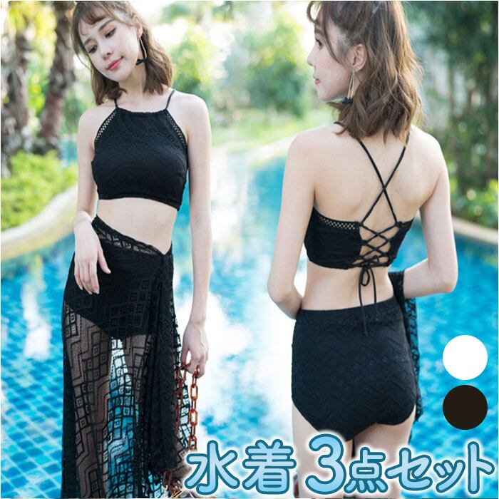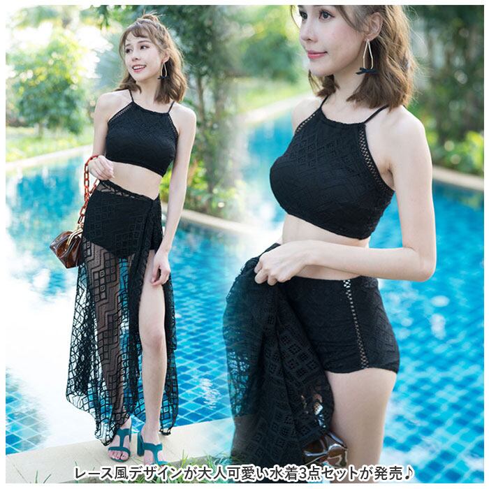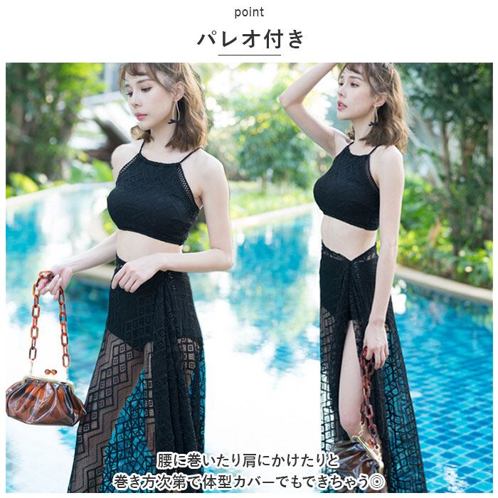 レディース 水着 3点セット 通販 体型カバー ビキニ セパレート タンキニ 海水着 水泳着 スイムスーツ 大きい 大きいサイズ パレオ レース ホルターネック 大人 オトナ女子 可愛い かわいい カワイイ 20代 30代 40代 リゾート プール