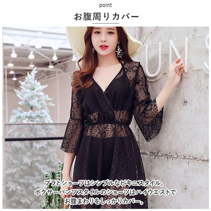 ・総レースのスカートでセクシーに2WAYスタイル☆大人可愛い水着3点セット♪