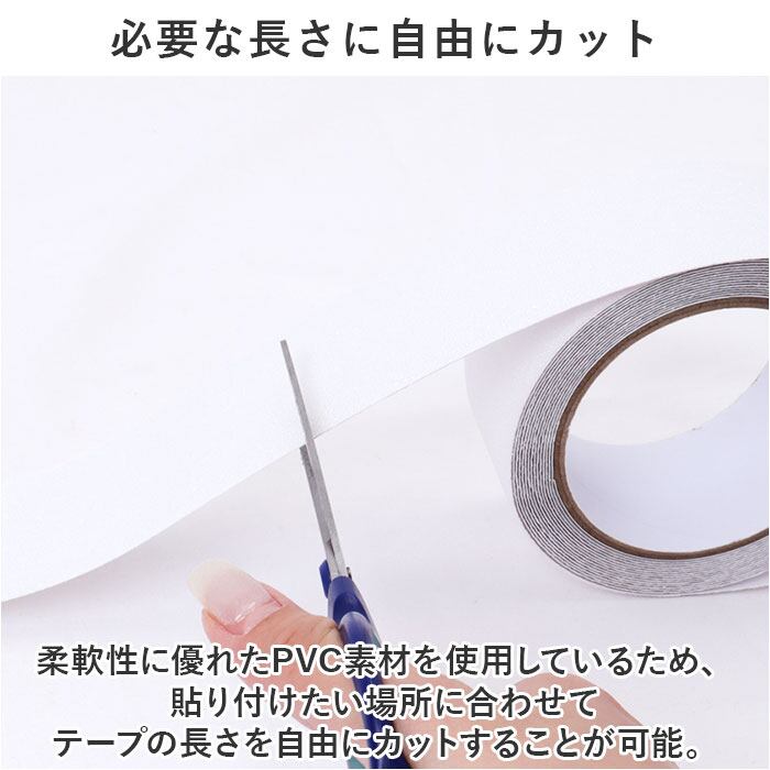 ・柔軟性に優れたPVC素材を使用しているため、貼り付けたい場所に合わせてテープの長さを自由にカットすることが可能。