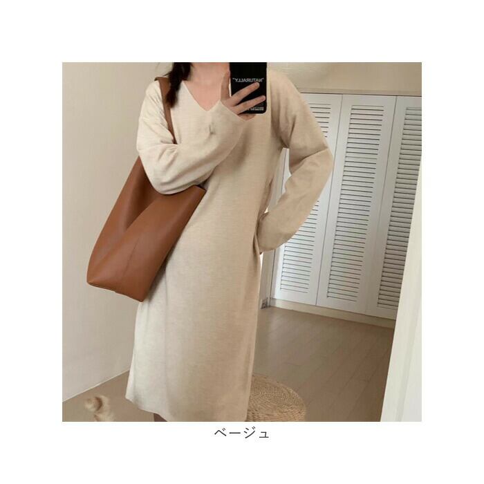 ニットワンピース Vネック レディース 秋 冬 ktds099