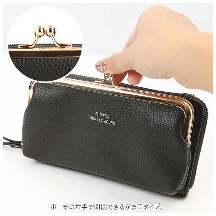 ・お財布部分はラウンドファスナーで大きく開き、引き手は指を引っかけて開けやすい!