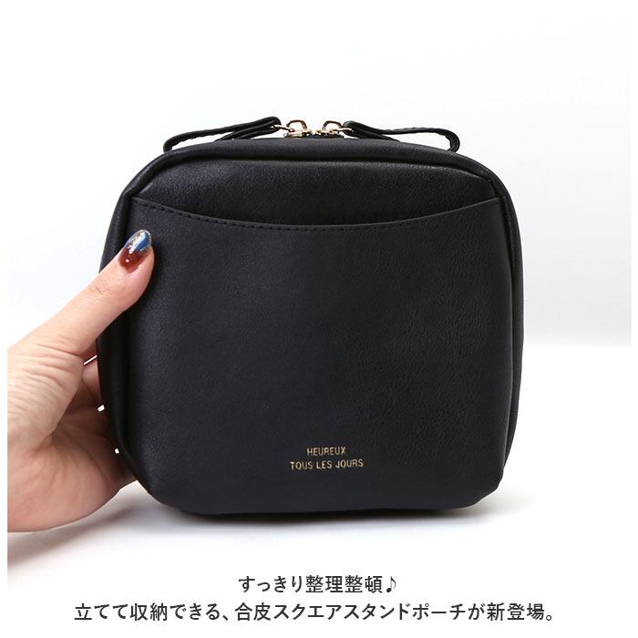・すっきり整理整頓♪立てて収納できる、合皮スクエアスタンドポーチが新登場。