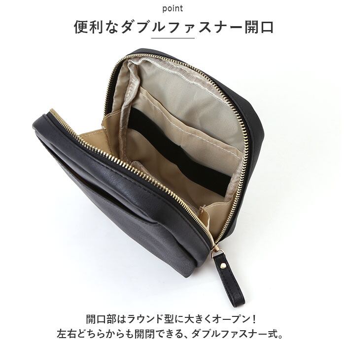 ・開口部はラウンド型に大きくオープン!左右どちらからも開閉できる、ダブルファスナー式。