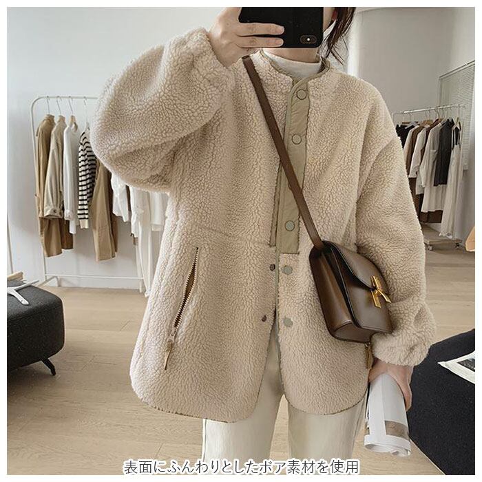 ボア ジャケット レディース 通販 ブルゾン ボアジャケット ボアブルゾン スタンドカラーコート スタンドカラー コート ミドル丈 ファスナー ポケット ふわふわ もこもこ ゆったり 秋冬 秋 冬 暖かい あったか おしゃれ シンプル 大人 かわいい 可愛い アウター