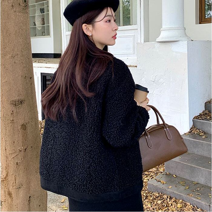 ・デニムなどとの相性も抜群。大人のカジュアルコーデにマッチするボアジャケット。
