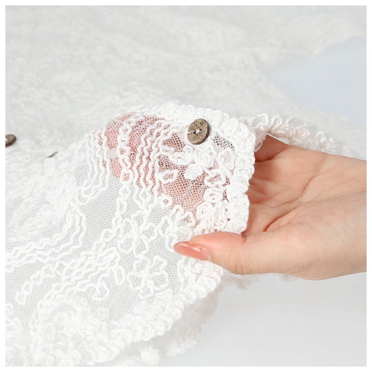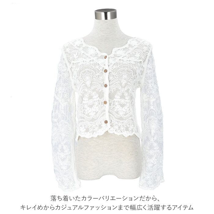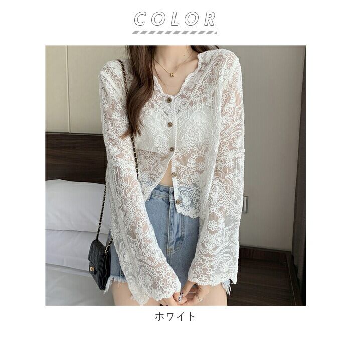 ・生地に花柄の総レースを使用し、夏のコーデをよりおしゃれにするカーディガン♪