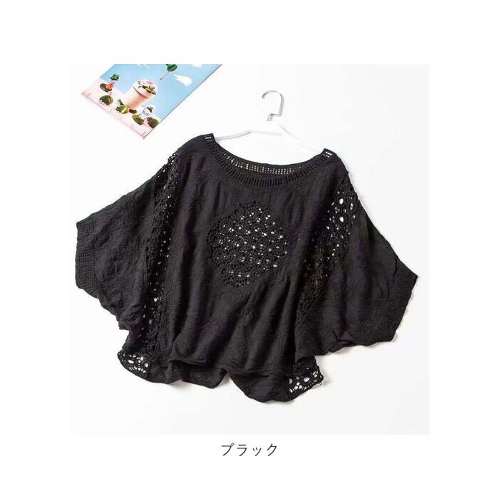 レース トップス 半袖 通販 ブラウス レディース 刺繍ブラウス Tシャツ プルオーバー ゆったり 春夏 かわいい ドルマン 春 可愛い 夏 体型カバー 刺繍 透け感 綿 コットン ボリューム袖 五分袖 5分袖 カジュアル ナチュラル レディースファッション
