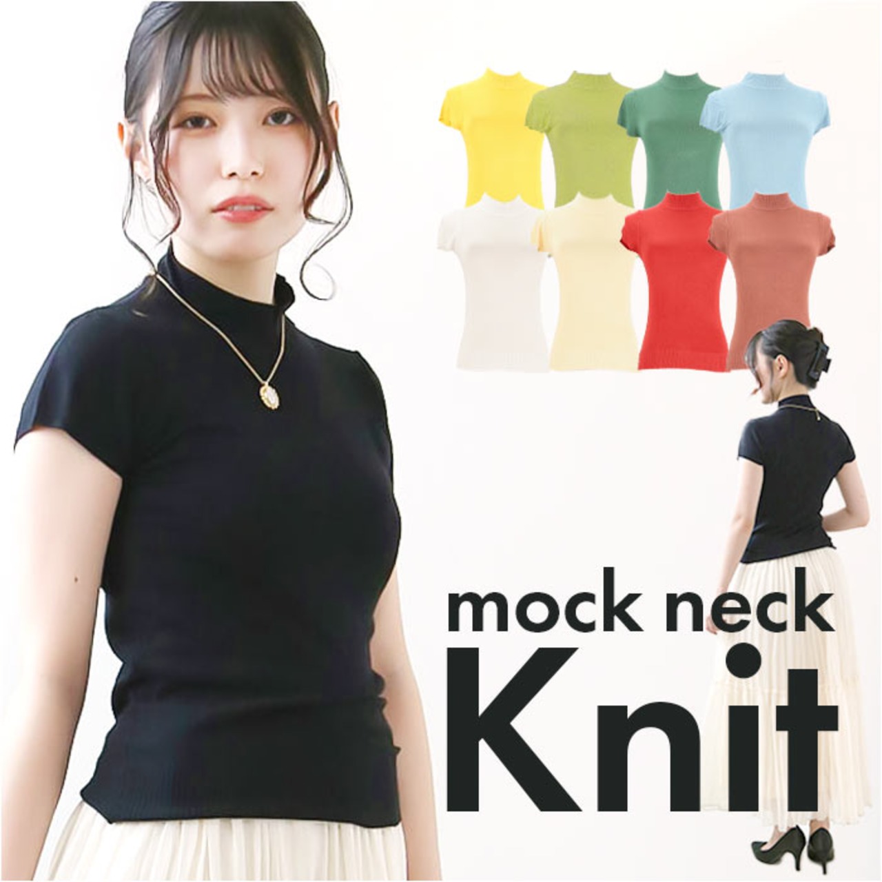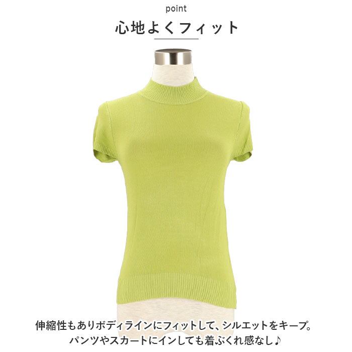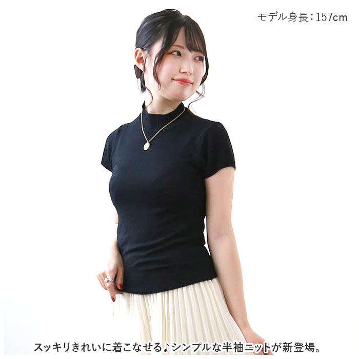 半袖ニット 通販 サマーニット ニット 半袖 リブニット トップス ハイネック 無地 シンプル 薄手 リブ編み 通勤 通学 オフィスカジュアル Tシャツ 春 夏 上品 おしゃれ オシャレ かわいい 可愛い