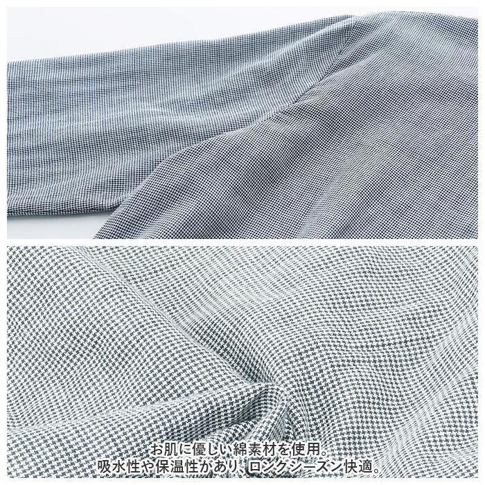 ・色んなコーデに合わせやすい落ち着きのある千鳥柄。襟元や袖口、ボタンのホワイトカラー使いがアクセント。