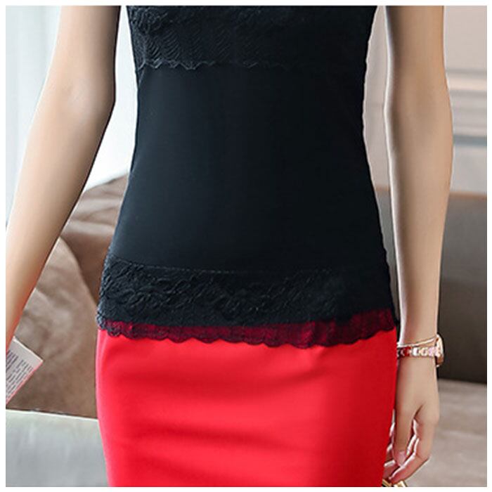 ・レース使いがおしゃれ。胸元の透けレースはほどよくヘルシーに肌魅せしてくれる。大人デザインのアイテム。