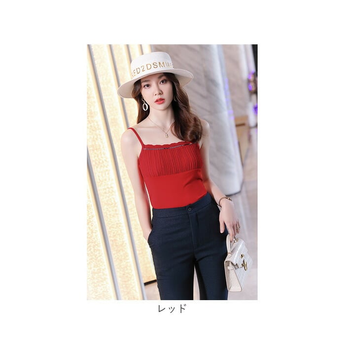 キャミソール ギャザー 通販 ノースリーブ トップス タンクトップ V ネック レイヤード 重ね着 シャツ インナー レディース セクシー スリム フォーマル かわいい おしゃれ 大人