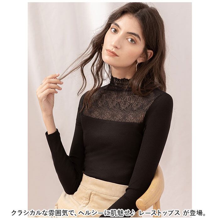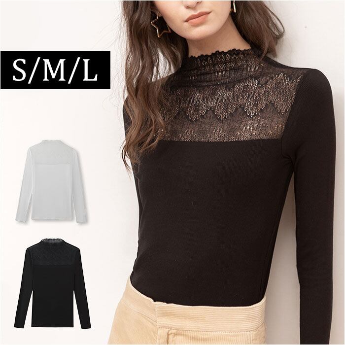 レース トップス 長袖 レディース 通販 カットソー インナー ハイネック タートルネック シアー 透け感 シースルー 重ね着 レイヤード タイト スリム 薄手 大人 かわいい きれいめ 通勤 通学 おしゃれ 春 秋 冬 可愛い 婦人服