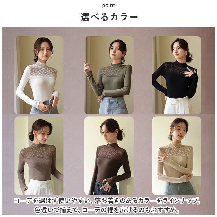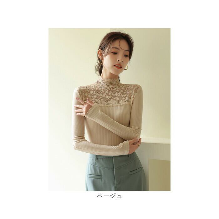 レース トップス 長袖 レディース 通販 カットソー インナー タートルネック ハイネック シースルー シアー 透け感 重ね着 レイヤード タイト スリム 薄手 大人 かわいい きれいめ おしゃれ 通勤 通学 春 秋 冬 可愛い 婦人服