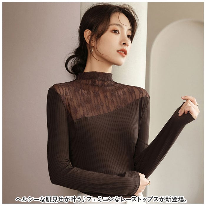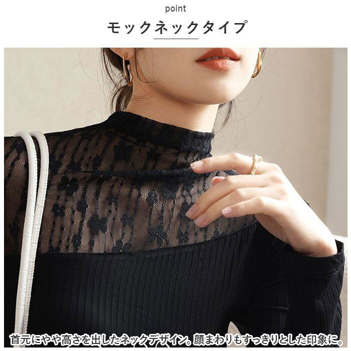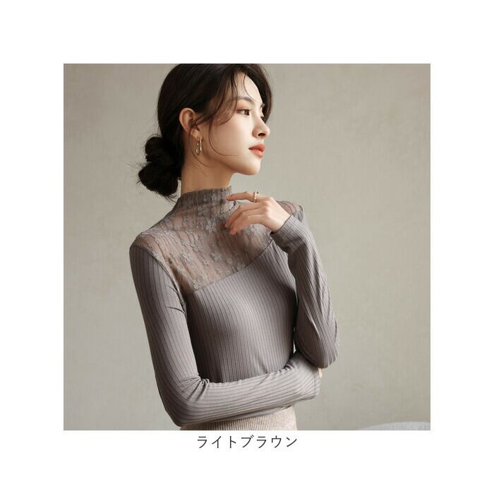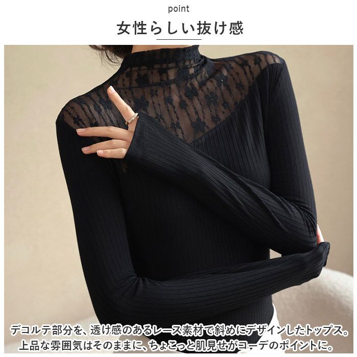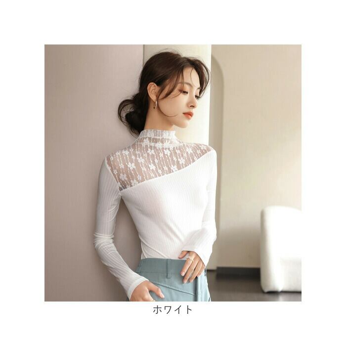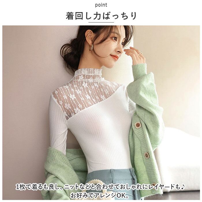 レース トップス 長袖 レディース 通販 カットソー インナー ハイネック タートルネック シアー 透け感 シースルー 重ね着 レイヤード タイト スリム 薄手 大人 かわいい きれいめ 通勤 通学 おしゃれ 春 秋 冬 可愛い 婦人服