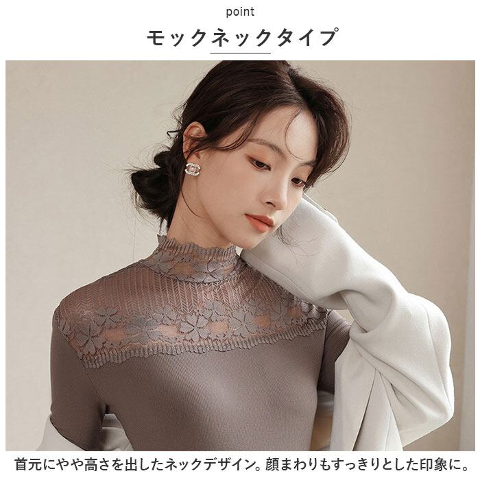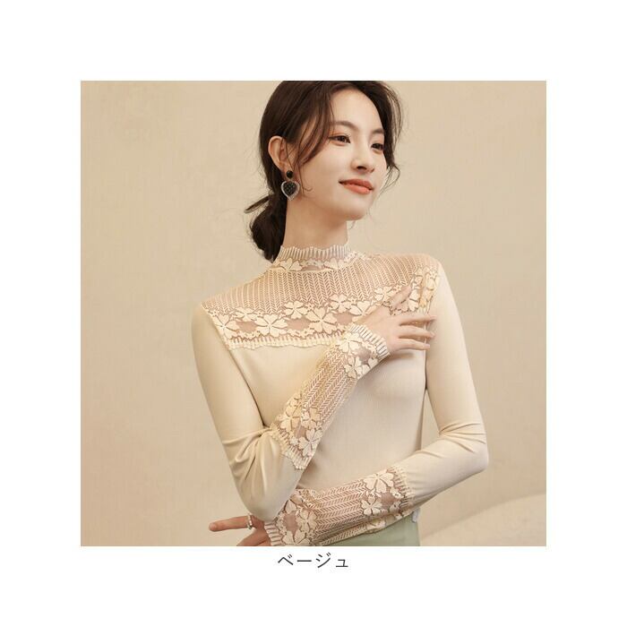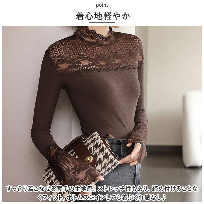 レース トップス 長袖 レディース 通販 カットソー インナー ハイネック タートルネック シアー 透け感 シースルー 重ね着 レイヤード タイト スリム 薄手 大人 かわいい きれいめ 通勤 通学 おしゃれ 春 秋 冬 可愛い 婦人服
