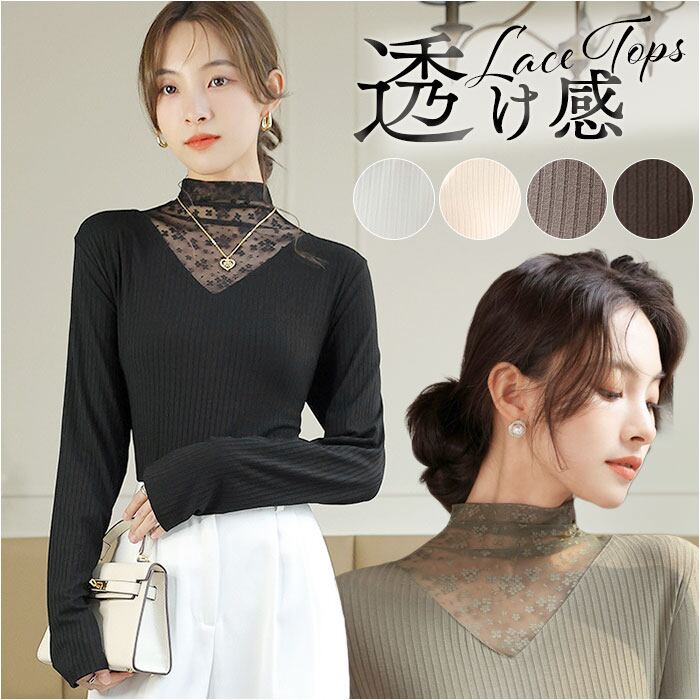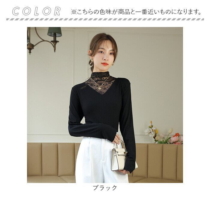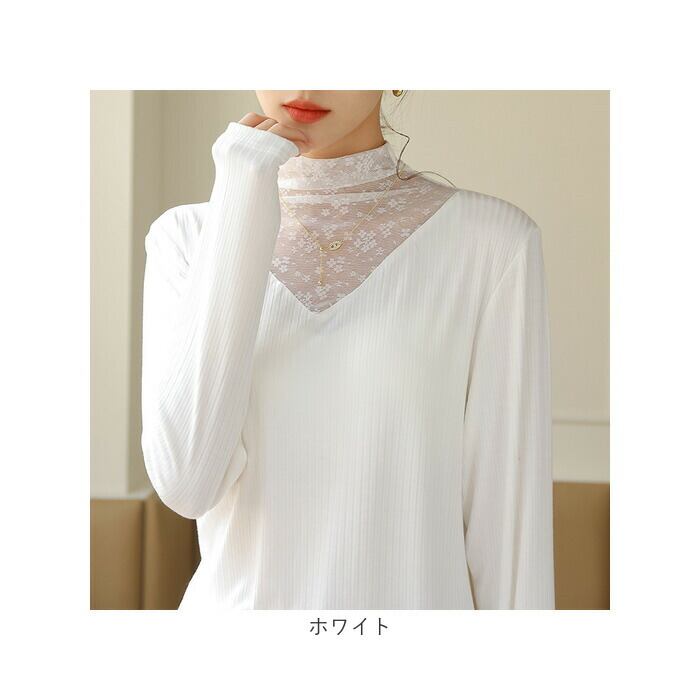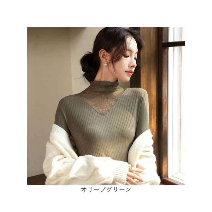 レース トップス 長袖 レディース 通販 カットソー インナー タートルネック ハイネック シースルー シアー 透け感 重ね着 レイヤード タイト スリム 薄手 大人 かわいい きれいめ おしゃれ 通勤 通学 春 秋 冬 可愛い 婦人服