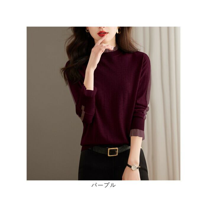 ・トレンドのシースルーを両サイドに。重くなりがちなハイネックニットに今っぽい抜け感をプラスし、軽やかで華やかな印象に仕上げたアイテム。