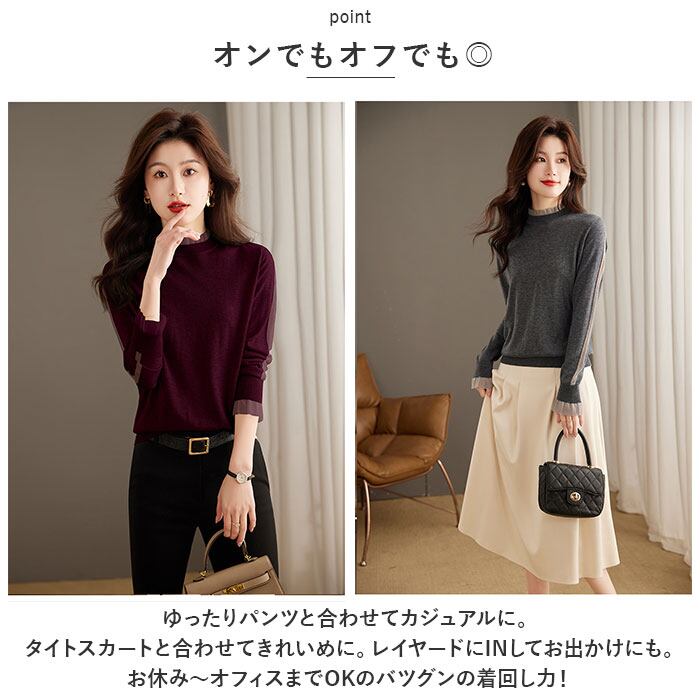 ・ゆったりパンツと合わせてカジュアルに。タイトスカートと合わせてきれいめに。レイヤードにINしてお出かけにも。お休み~オフィスまでOKのバツグンの着回し力!
