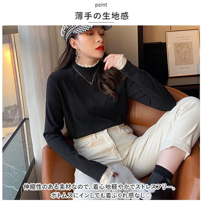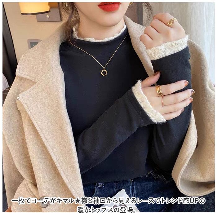 ・一枚でコーデがキマル★襟と袖口から見えるレースでトレンド感UPの暖かトップスの登場。