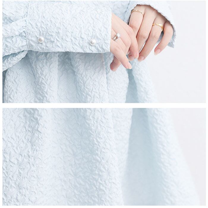 ・デザイン性の高い、パフスリーブ袖。袖口にはパールライクなアクセントをプラスし、まるでアクセサリーを付けているかのよう♪