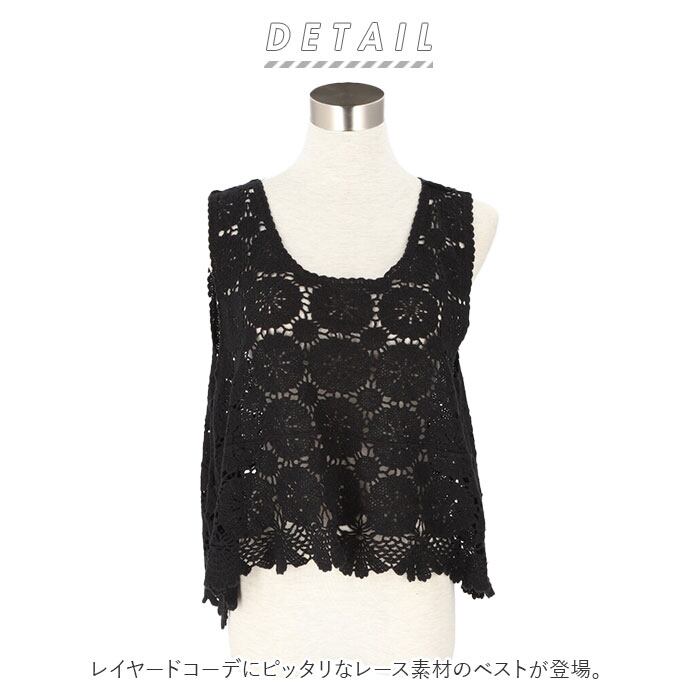 ・レイヤードコーデにピッタリなレース素材のベストが登場。