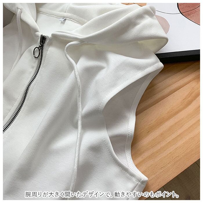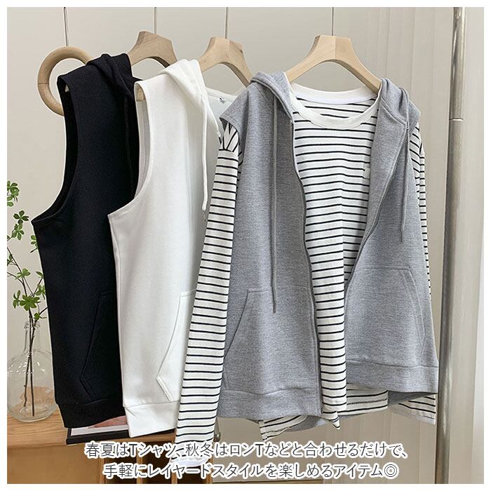 ノースリーブ パーカー レディース 通販 ノースリーブパーカー ベスト スウェット フーテッドベスト パーカーベスト ファスナー ジップアップ フード付き ゆったり 重ね着 レイヤード おしゃれ 可愛い かわいい カジュアル シンプル 秋 春 前開き 前あき トップス