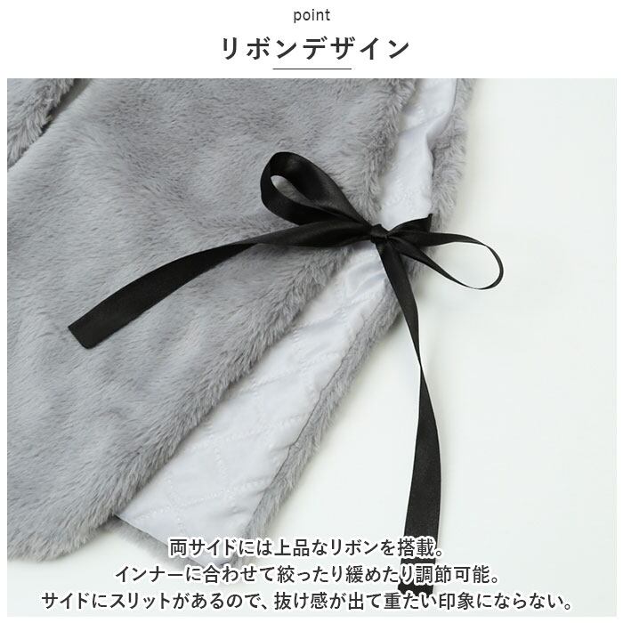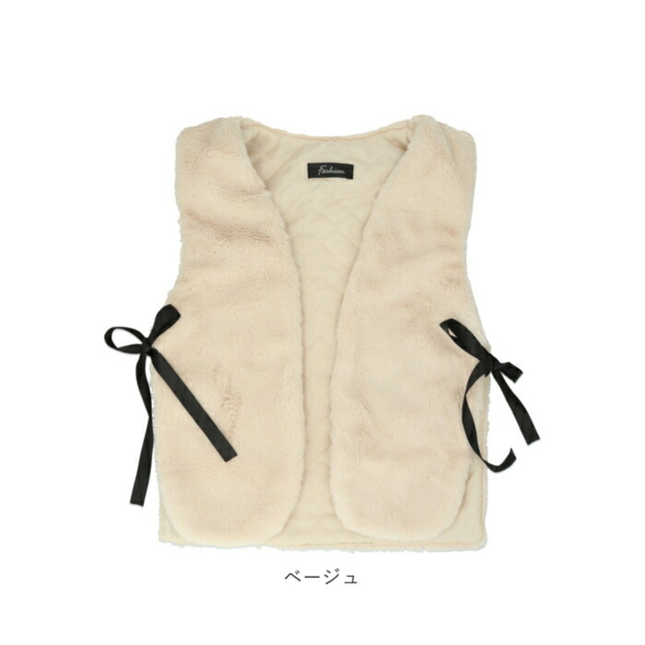 ファーベスト ショート 通販 ベスト ジレ アウター レディース 秋冬 ボアベスト ふわふわ もこもこ おしゃれ サイドリボン ノーカラー ノースリーブ 羽織り 軽い 大人 かわいい フェイク ファー 柔らか きれいめ シンプル ボリューム 秋 冬 ゆったり