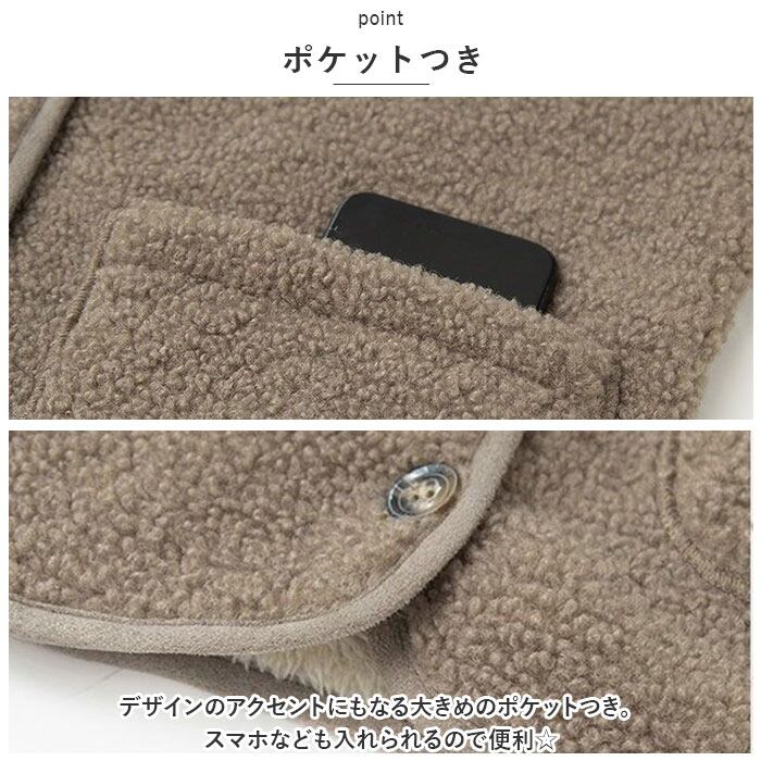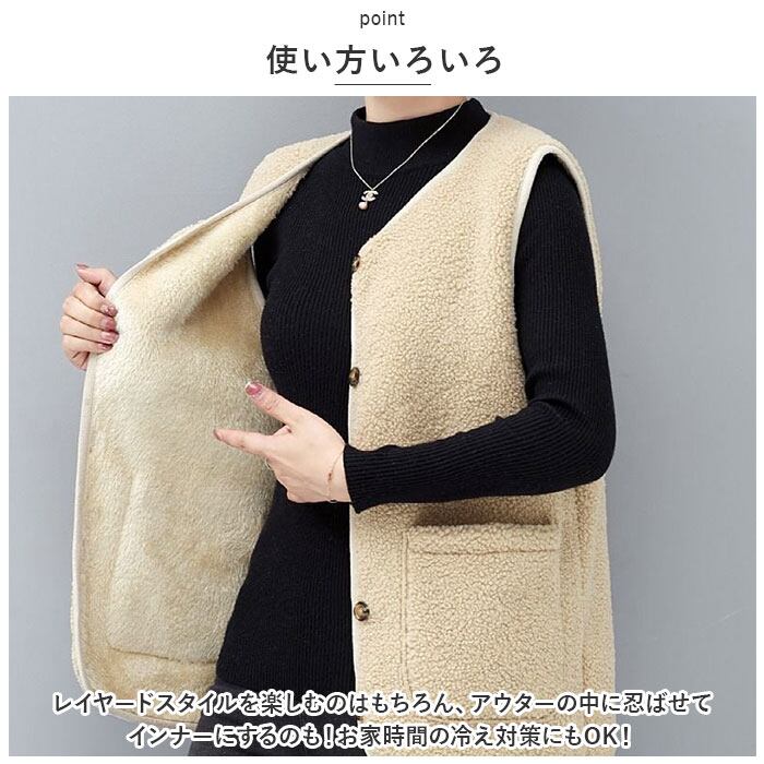 ボアベスト レディース ボタン 通販 ボア ベスト ジレ 重ね着 ノースリーブ ノーカラー 前開き ポケット 通気性 あったか 暖かい 温かい もこもこ モコモコ 無地 防寒 秋 冬 秋物 冬物 おしゃれ きれいめ カジュアル アウター トップス