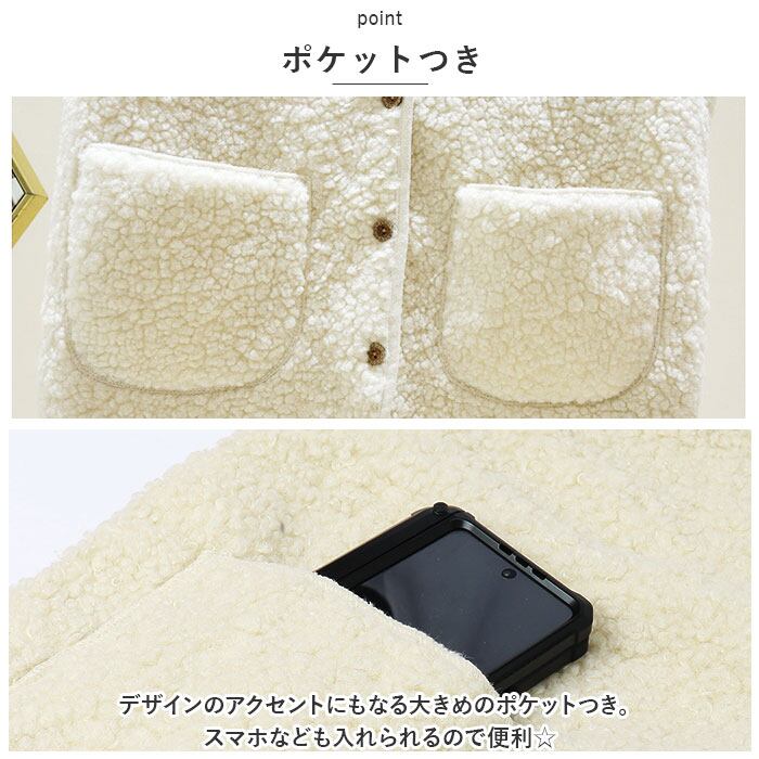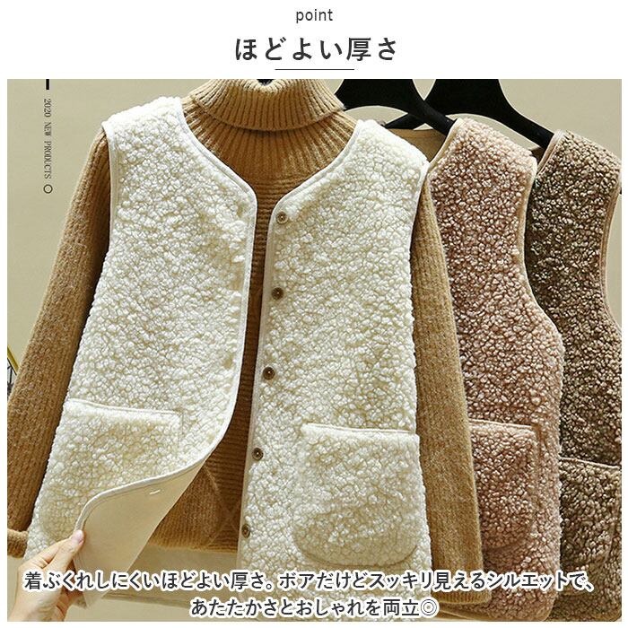 ボアベスト レディース ボタン 通販 ボア ベスト ジレ 重ね着 ノースリーブ ノーカラー 前開き ポケット あったか 暖かい 温かい ショート もこもこ モコモコ 無地 防寒 秋 冬 秋物 冬物 おしゃれ きれいめ カジュアル 通勤 通学 アウター トップス