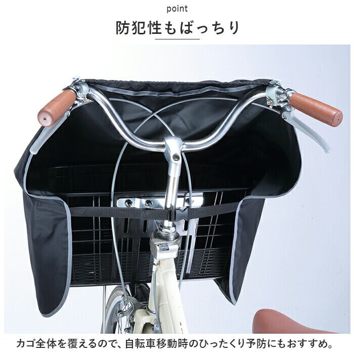 ・カゴ全体を覆えるので、自転車移動時のひったくり予防にもおすすめ。
