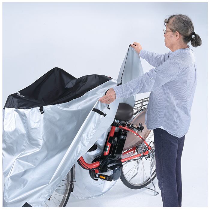 ・前カゴ付きの自転車もすっぽり!使いやすい工夫がたくさんの「アシスト車対応サイクルカバー レギュラーサイズ」が登場!