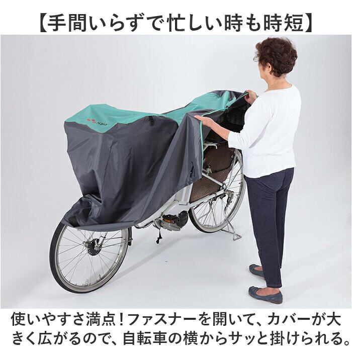 ・大切な自転車をしっかり守る♪前子供乗せ付と後ろカゴ付きの電動アシスト車にも対応の「サイクルカバーFINE Lサイズ」の登場。
