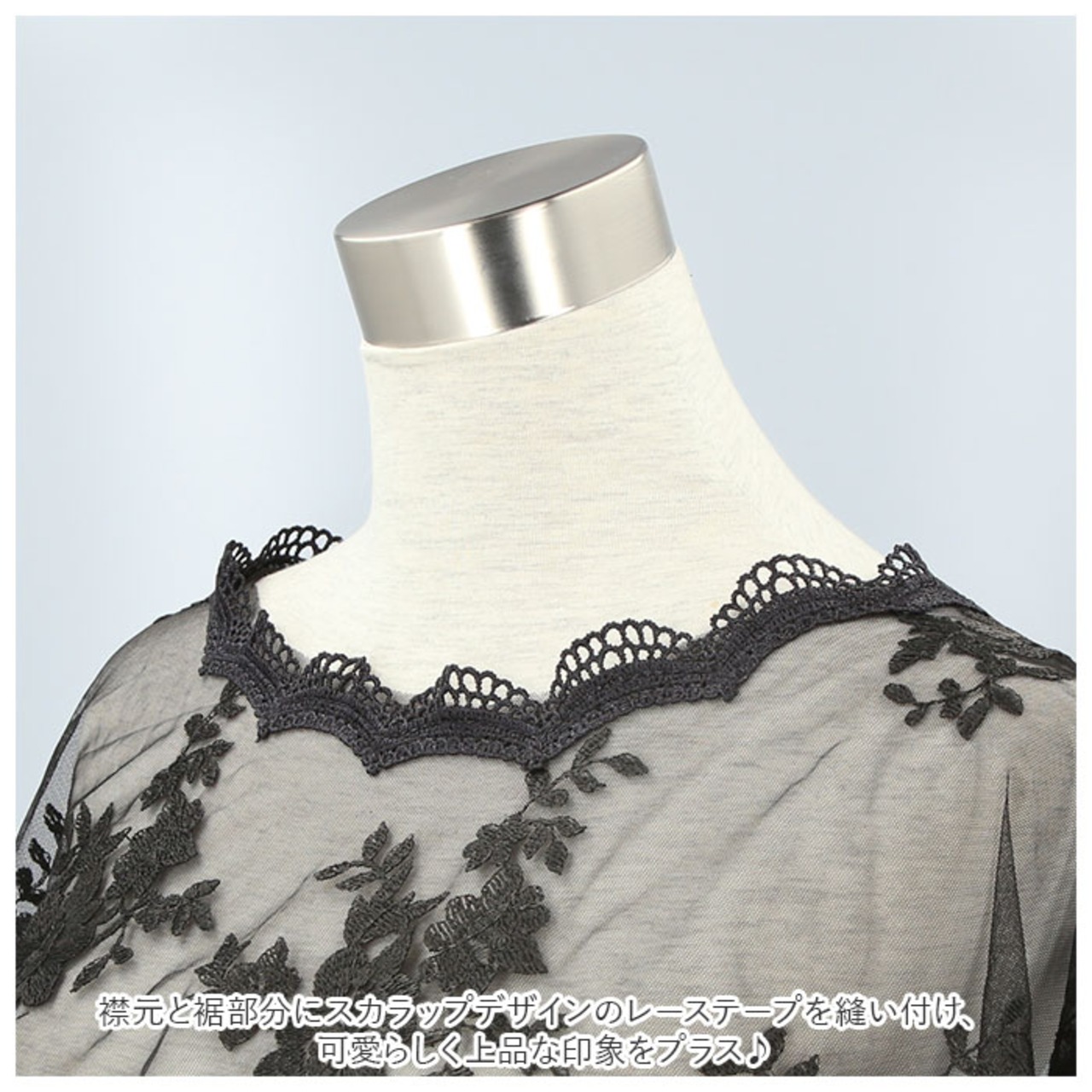 ・程よい透け感のあるレース素材を使用した、女性らしさが際立つデザイン。