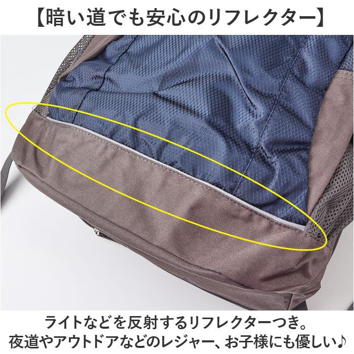 ・ライトなどを反射するリフレクターつき。夜道やアウトドアなどのレジャー、お子様にも優しい♪