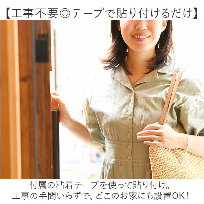 ・付属の粘着テープを使って貼り付け。工事の手間いらずで、どこのお家にも設置OK!