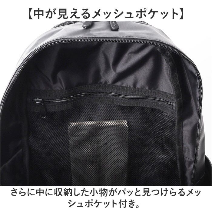 ・背面とショルダー裏にメッシュパッドを取り付け、移動中も肩の負担が軽くムレにくい◎