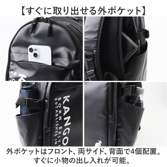 ・外ポケットはフロント、両サイド、背面で4個配置。すぐに小物の出し入れが可能。