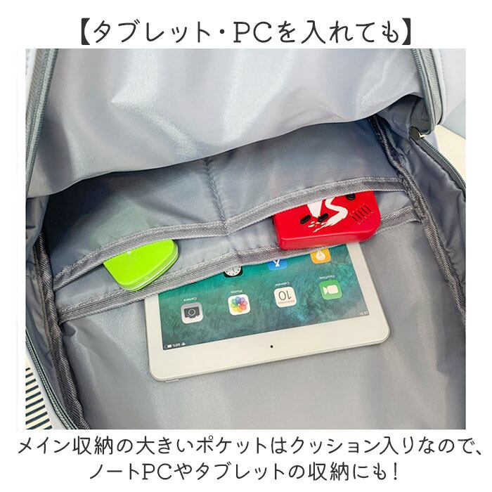 ・メイン収納の大きいポケットはクッション入りなので、ノートPCやタブレットの収納にも!