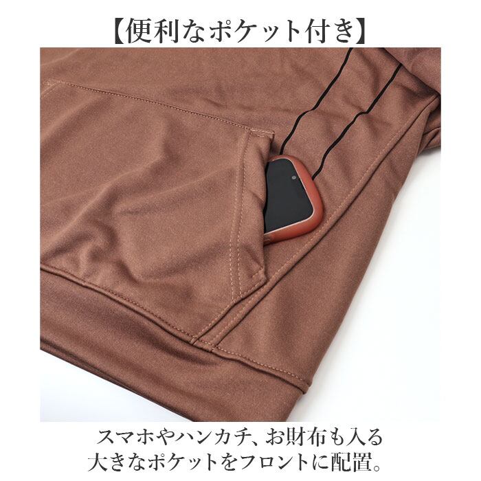 ・スマホやハンカチ、お財布も入る大きなポケットをフロントに配置。