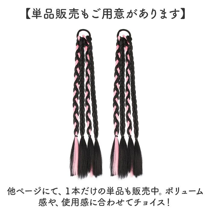 三つ編み カラーエクステ ゴムタイプ 2本セット